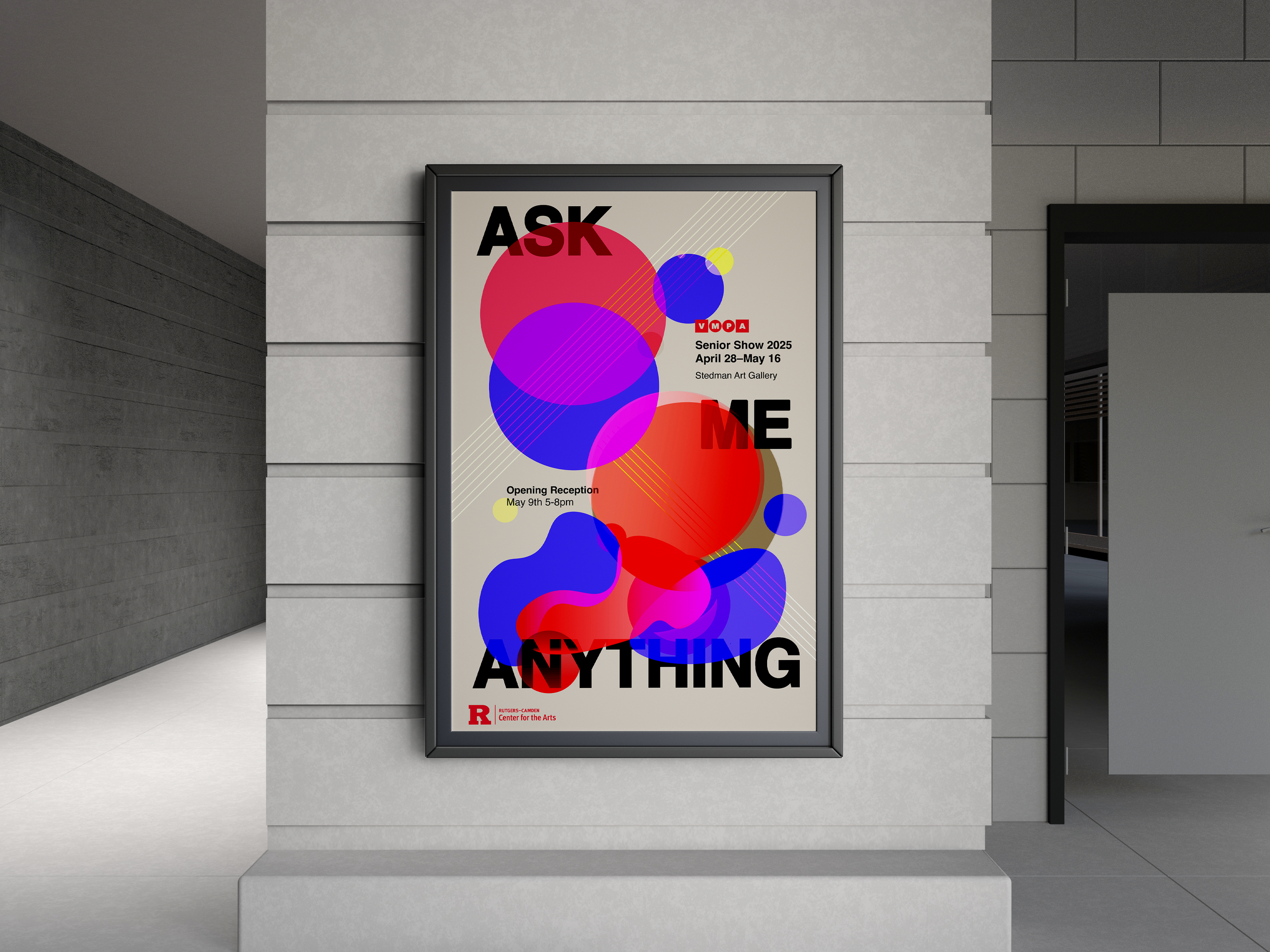 Design a cohesive and impactful identity system for my senior thesis exhibition that could adapt across multiple formats — print, digital, and environmental — while representing the diversity of work in the show. I needed to find a way to incorporate feedback from three different department heads, all from different mediums.